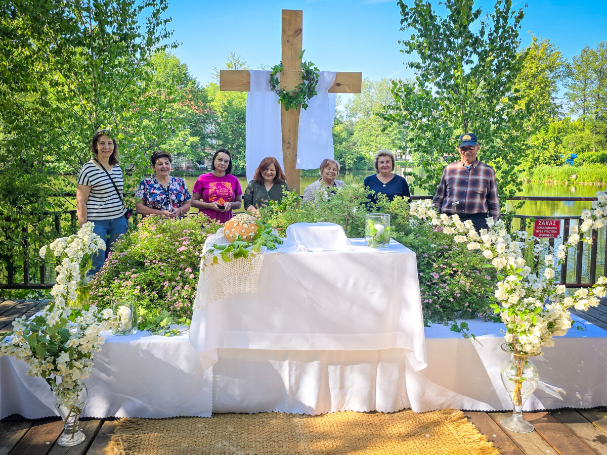 2025-09-20Podczas tegorocznej procesji Bożego Ciała Towarzystwo Miłośników Zwierzyńca przygotowało trzeci z czterech ołtarzy. Powstał on przy deptaku nad stawem kościelnym w naturalnej wnęce, z której rozciąga się widok na kościół pw. św. Jana Nepomucena.Czytana przy tym ołtarzu Ewangelia (Łk 24,13–35) opowiadała o dwóch uczniach, którzy – pogrążeni w smutku po śmierci Jezusa – spotkali Go na drodze do Emaus, choć Go nie rozpoznali. Dopiero kiedy usiedli z Nim do stołu i zobaczyli, jak łamie chleb, otworzyły się im oczy i poznali Go. Dlatego właśnie chleb ozdobiony liśćmi winorośli stał się centralnym znakiem naszego ołtarza. Na znak naszej indywidualnej i wspólnotowej bliskości z Jezusem Chrystusem przy bochnie chleba stanęła monstrancja. W geście symbolicznym, ale i praktycznym, chleb z ołtarza został pokrojony i rozdzielony między uczestników procesji – by spotkanie z Jezusem stanowiło kontynuację eucharystycznego daru poza liturgią, w codziennym życiu.