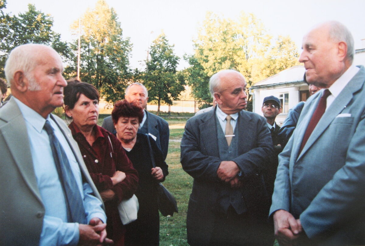 Uczestnicy VI Sejmiku podczas wycieczki po Roztoczu – Bondyrz, wizyta u Jana Sitka (z prawej), z lewej prof. Dominik Fijałkowski – 2004 rok
